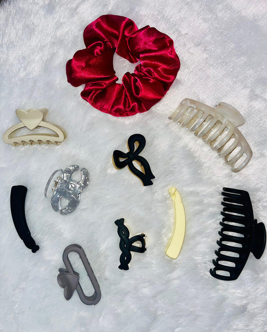 10-Piece Hair Accessory Set – Claw Clips, Scrunchie & Hairpins