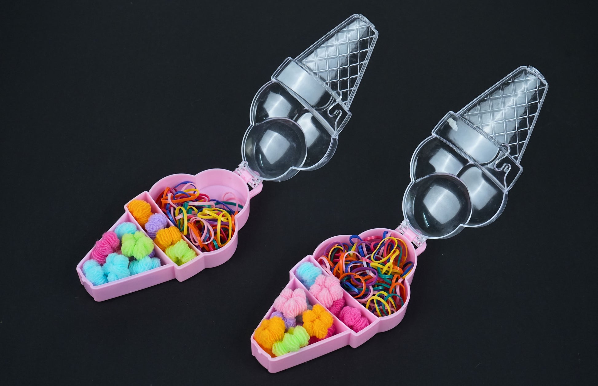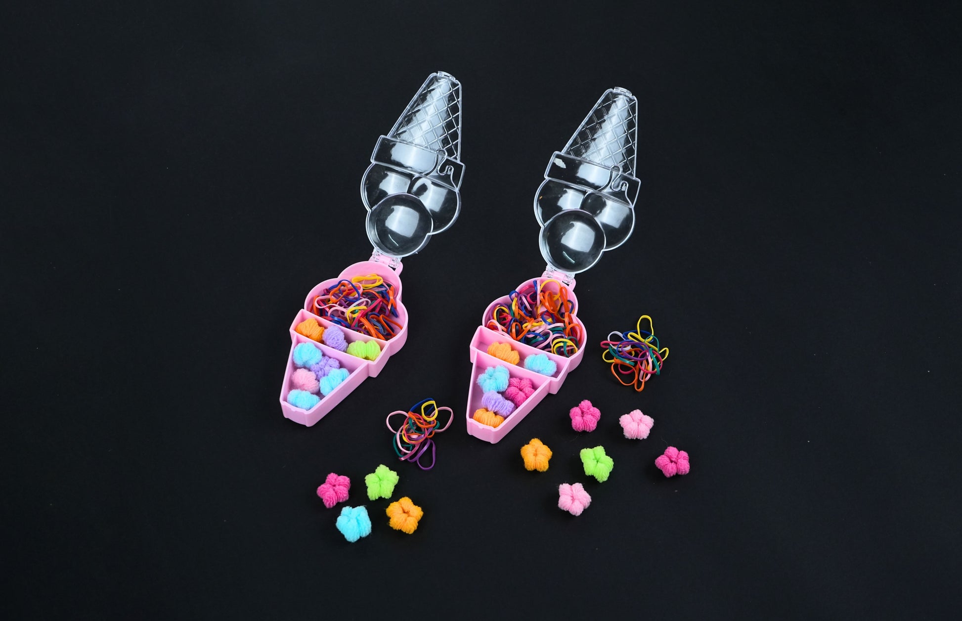 Make hairstyling exciting & playful with this adorable ice cream-shaped hair accessory set! Featuring multicolor elastic hair ties & soft bands, this set is gentle on hair, keeps it secure, and comes in a cute storage case β perfect for kids & toddlers.